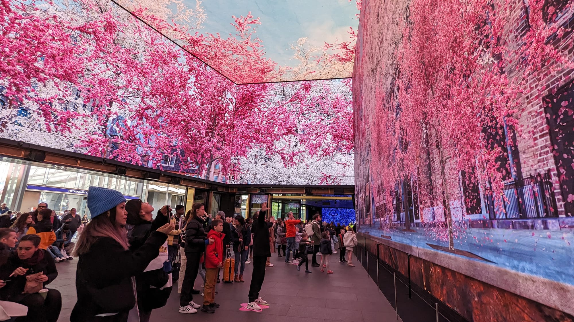 I went along today to the just-launched interactive show and, although the images were matched with audio from National Trust gardens, and kids could wave their hands to make blossom confetti move about the screen, it really felt like a 2-D experience, no matter how many surfaces they projected blossom onto. Because you can't touch the rugged bark of the tree. You can't watch the blossom bob in the wind. You can't smell the sweet scent or watch bees land happily. While I applaud the intent of making this seasonal wonder more accessible to the masses, this digital representation of a natural phenomenon feels like it's moving people further away from nature, not closer.